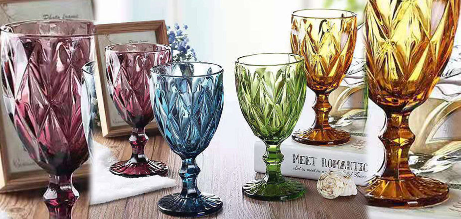 Wholesale Hot Selling Pink Blue Custom Diamond Drinking Wedding Champagne Goblet Colored Wine Glass Cup