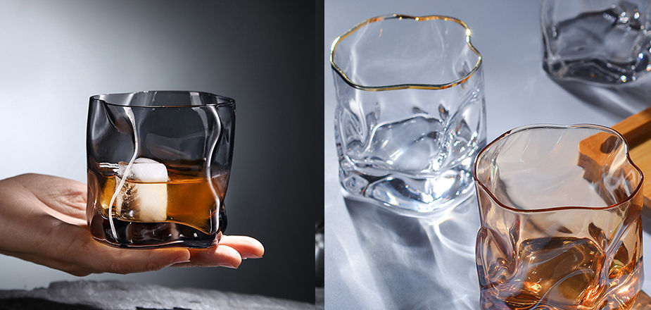 Japanese origami net red water mug ins frosted beer mug Household whiskey irregular glass colorful