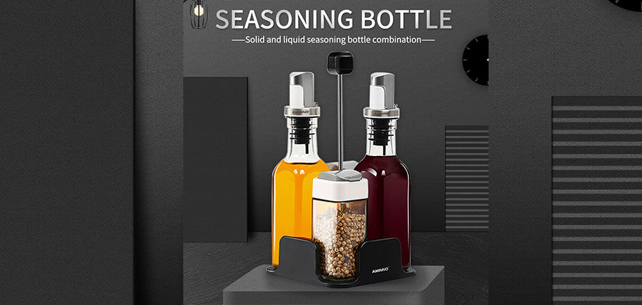 5pcs Glass Jar Set Small Household Oil Salt Bottle Kitchen Sauce Vinegar Pot Seasoning Bottle